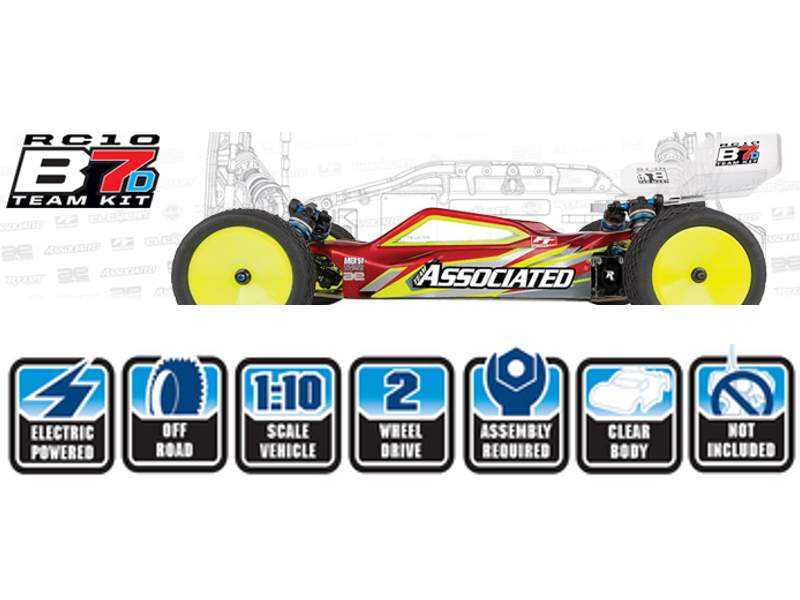 Angefangen mit dem ersten RC10 war Team Associated in den letzten 40 Jahren führend im Bereich 2WD Offroad im Maßstab 1:10 und ist stolz darauf, der Welt die nächste Generation des RC10 zu präsentieren – den RC10B7. In den letzten 40 Jahren hat es viele Entwicklungen und Veränderungen gegeben und jede Generation hat einen Schritt nach vorne gemacht. Der RC10B7 ist da keine Ausnahme und verfügt über eine neue Aufhängungsgeometrie mit langen Querlenkern, einer zur Fahrzeugmitte hin versetzten Elektronik, KPI Lenkblöcken und einer verbesserten Abstimmung des gesamten Fahrwerks. Diese Neuerungen haben den Grip und die Kurvengeschwindigkeit erhöht, was zu schnelleren Rundenzeiten und einem insgesamt leichteren Handling als bei der Vorgängergeneration führt.