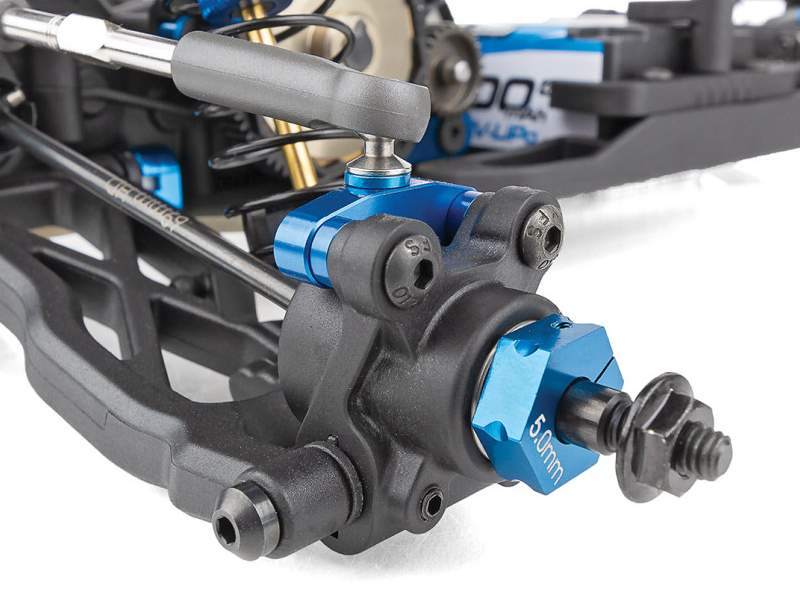 - Die einstellbaren KPI-Lenk- und Nachlaufblöcke ermöglichen eine Feinabstimmung des Lenkverhaltens. Drei Optionen sind im Bausatz enthalten