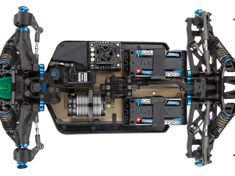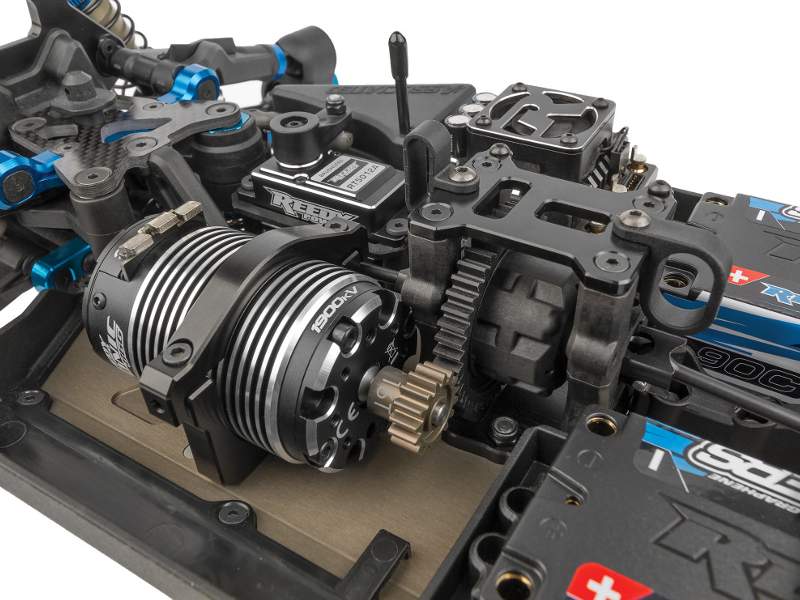 - RC8B4e ESC-Tray mit Schutzabdeckung hat eine einzigartige Position für 2x2s und 1x4s Akku-Setups für eine ideale Positionierung der Gewichtsverteilung