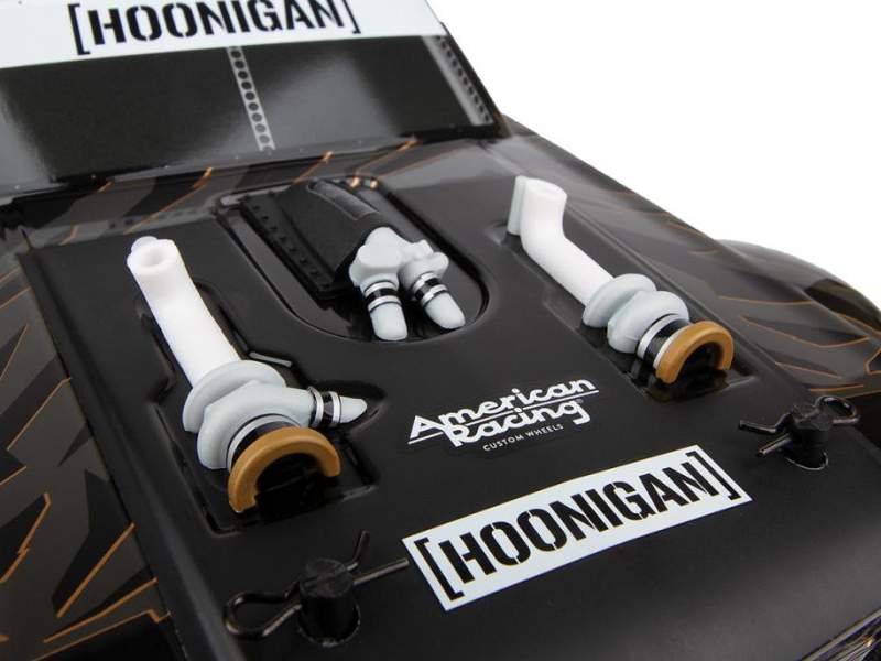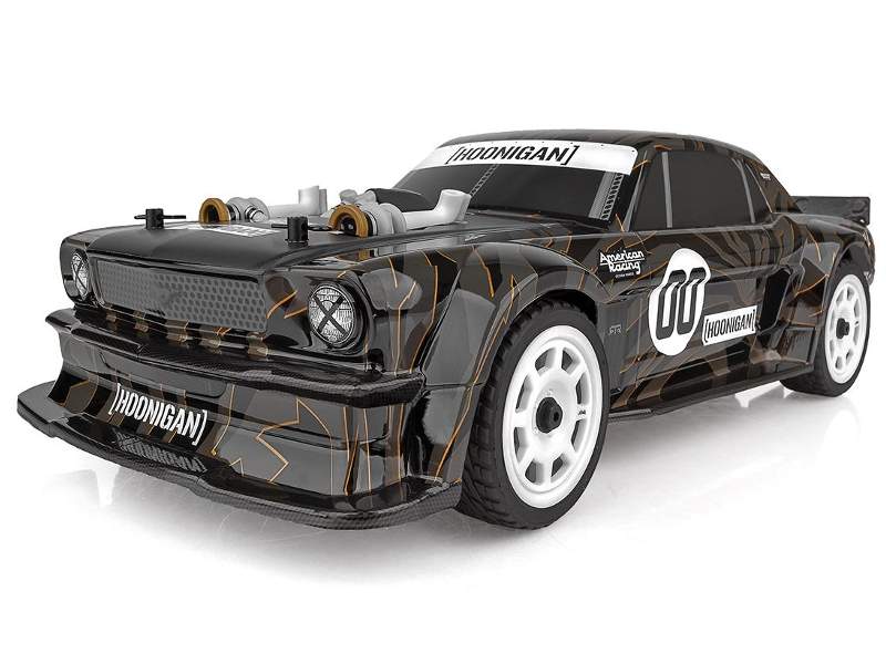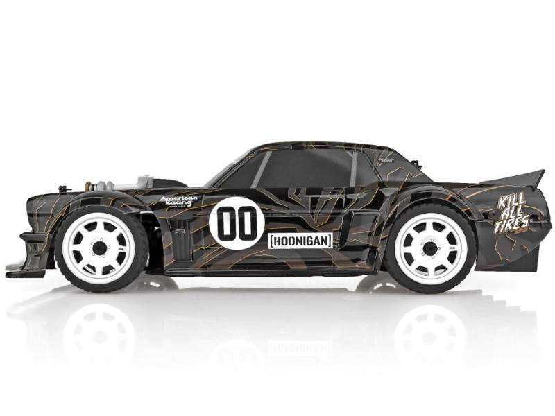 • Reflex 14R mit lizenzierter 1965er Ford Mustang Hoonigan® Hoonicorn-Karosserie und offiziell lizenzierten American Racing VF503-Felgen