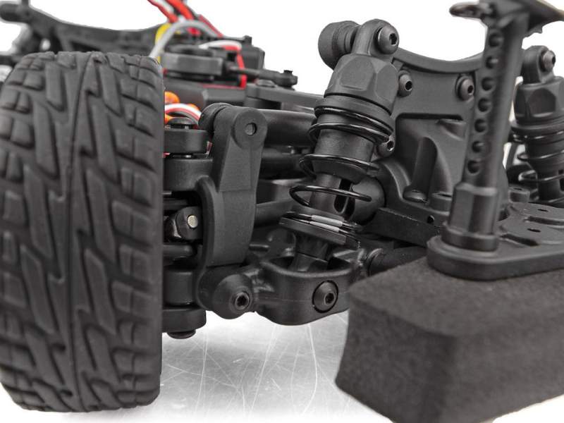 Das Reflex 14R-Chassis verfügt über einige der neuesten Features aus dem On-Road-Racing-Bereich. Dank abgedichteten Kegeldifferenzialen vorn und hinten, einem Kunststoffwannenchassis mit Kardanwellenabdeckung und einstellbaren Stoßdämpferpositionen ist es die perfekte Plattform für den Hoonicorn und reifenzerfetzende Action!