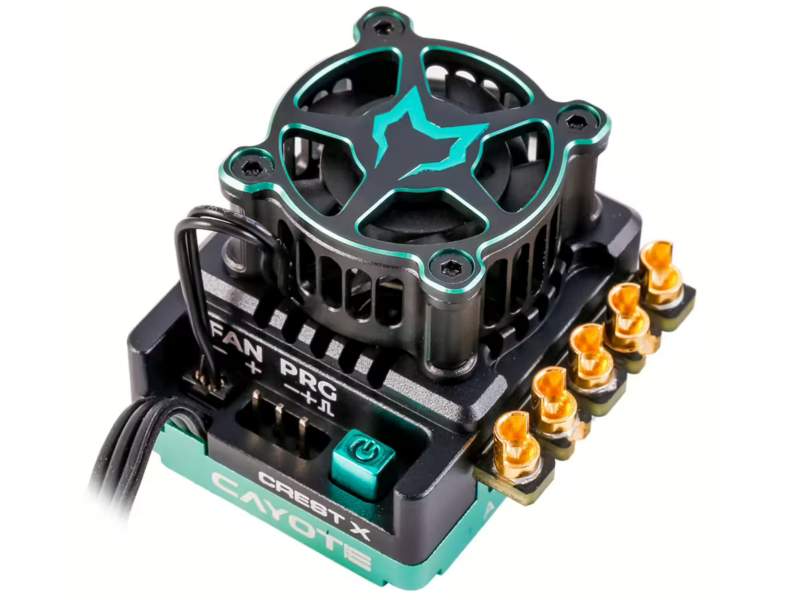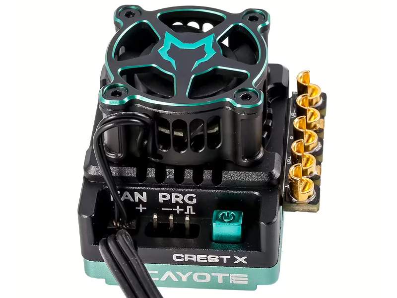 Der Cayote Crest X Fahrtenregler ist ein Wettbewerbs Fahrtenregler und liefert eine hohe Leistung und zuverlässige Stromübertragung, damit Sie mit Ihrem RC-Fahrzeuge reibungslos und effizient unterwegs sind. Der Crest X kann in Stock als auch in Modified – Klassen eingesetzt werden und bietet viele Einstellmöglichkeiten um Ihr 1:10 Car perfekt einzustellen.