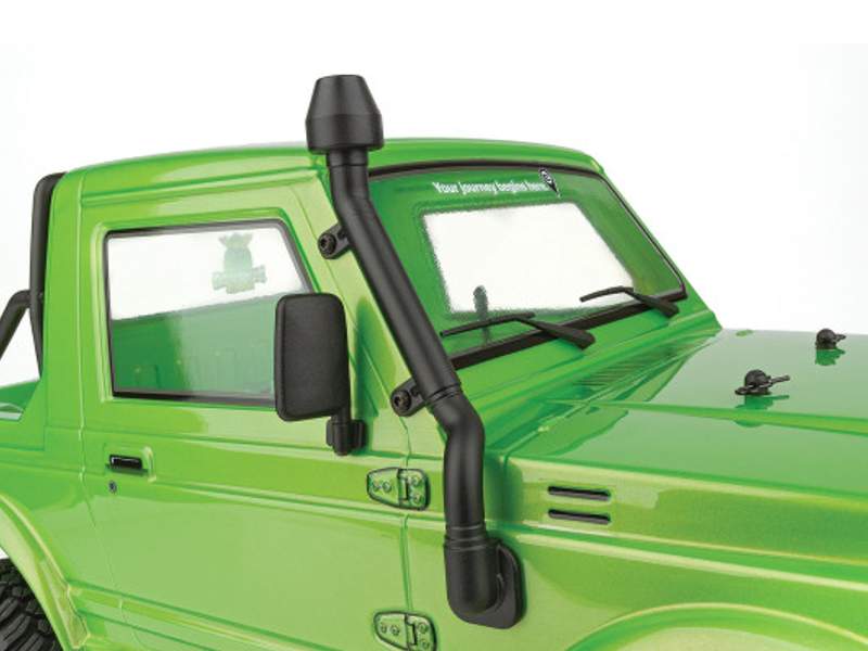 Die einteilige Polykarbonat-Karosserie ist vorlackiert, hat transparente Scheiben und wird mit einem detaillierten Dekorbogen und zusätzlichen Aufklebern geliefert, mit denen der Bushido weiter personalisiert werden kann. Für ein besonders vorbildgetreues Aussehen auf dem Trail sorgen Außenspiegel, Kühlergrill, Scheibenwischer, Ansaugschnorchel, Stoßfänger und Überrollbügel aus Spritzguss.