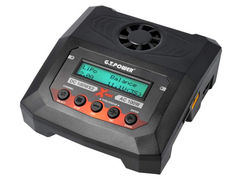 Das GTPower X2Mini Ladegerät AC/DC ist klein, handlich und zweifach-stark. Das X2 Mini-Ladegerät bietet zwei Anschlüsse zum schnellen Laden verschiedenster Akkus an. Dank dieser dual laufenden Schaltungen können also zwei Akkus voneinander unabhängig gleichzeitig geladen werden – ganz gleich, ob es sich dabei um einen LiPo-, NiMH- oder Pb-Akku handelt. Mit der leistungsstarken 100W Schaltung pro Kanal sind so bis zu 4S (Lithium-Akkus) und 8 Zellen (Nickel-Akkus) am X2 Mini-Lader anschließbar.