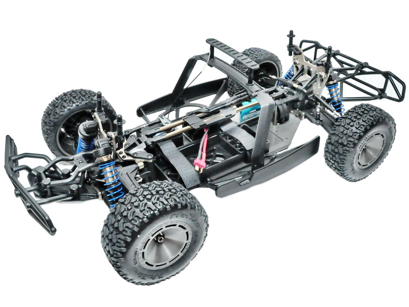 Zielgenaues lenken, fein abgestimmte Fahrwerksgeometrie und hohe Bodenfreiheit machen diesen Short Course Truck zu einem Fahrerlebnis das nicht nur auf der Rennstrecke seine Liebhaber finden wird.