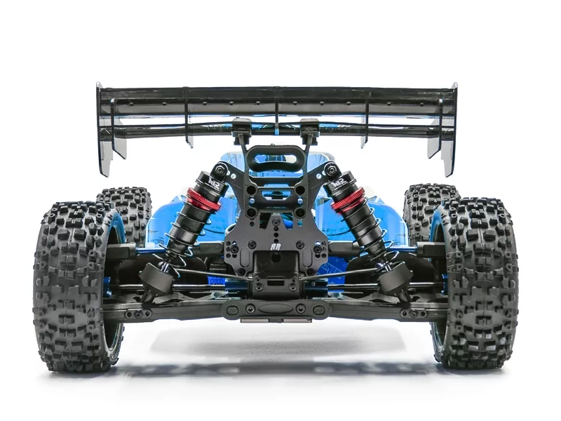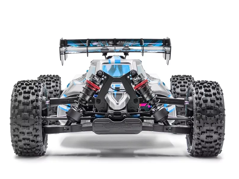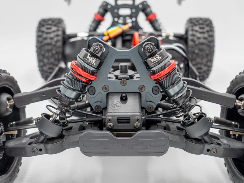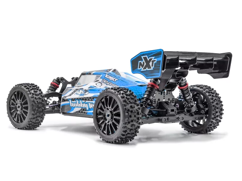 Der HobbyTech Spirit NXT EVO RR Buggy ist die kontinutierliche Weiterentwicklung der ikonischen 1/8-Brushless NXT-Buggys. Es wurden zahlreiche Verbesserungen vorgenommen, um ihn noch leistungsfähiger und zuverlässiger zu machen. Neue Teile wurden entworfen, um die Anordnung auf dem Chassis zu verändern und so den Schwerpunkt zu verbessern. Der gesamte Antrieb wurde durch die Verwendung von behandelten Kardanwellen des Typs „Spring Steel“ verstärkt. Auch das äußere Erscheinungsbild wurde durch die Verwendung eines TZO-Flügels, der auf einer neuen Monoblock-Halterung montiert ist, und durch eine neue Karosserieform, die dem derzeit im Rennsport am häufigsten verwendeten Design entspricht, weiterentwickelt.