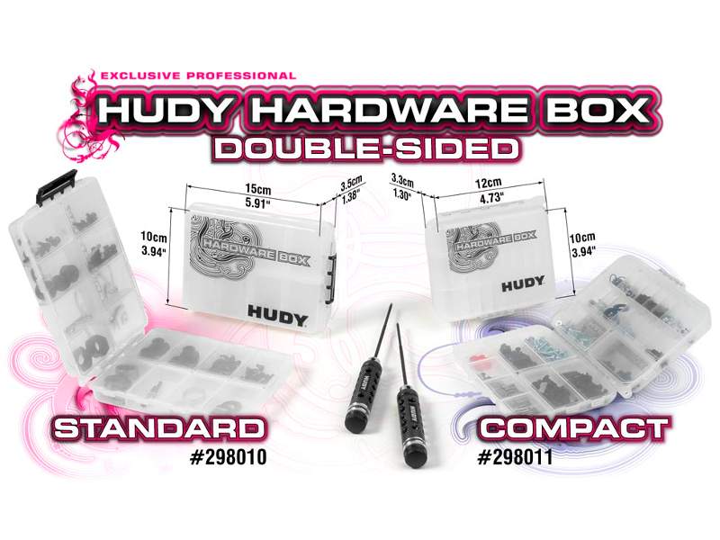Gerade die Handhabe vieler Kleinteile kann an der Rennstrecke Zeit kosten – vor allem die Suche nach ihnen. Daher präsentiert HUDY nun die neue doppelseitige Kleinteilebox.