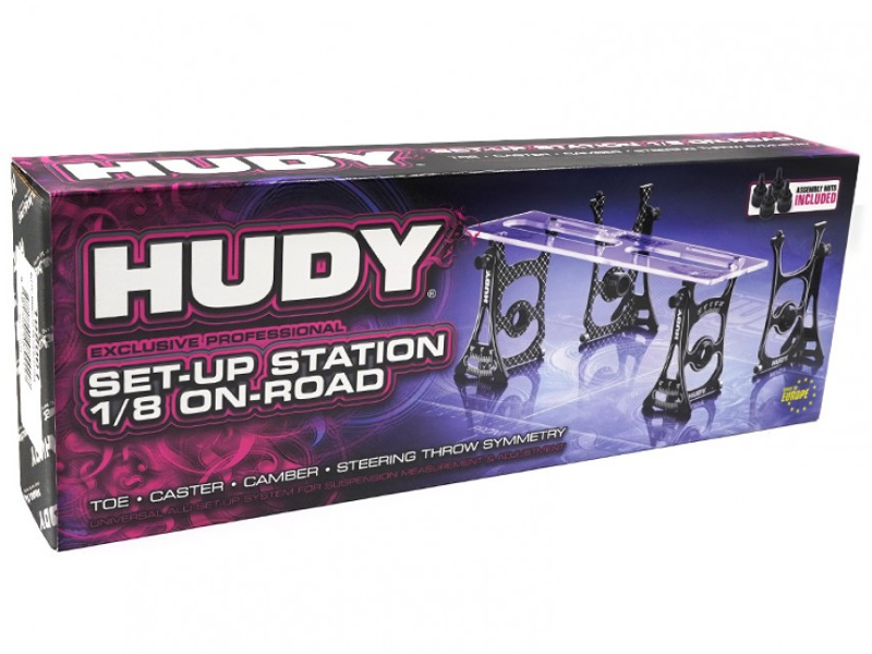 Die Hudy Set-Up-Station 1/8 On-Road wurde von Hudy speziell für 1/8 On-Road Fahrzeuge konzipiert und wird aus eloxiertem Aluminium gefertigt. Die Setup Station kommt im zeitgemäßem Design.