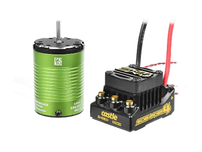 Die Sidewinder SW4 1406-4600 Combo von Castle Creations wird mit dem Sidewinder SW4 Sensorless/Sensored ESC und einem 1406-4600 Sensored Motor ausgeliefert.