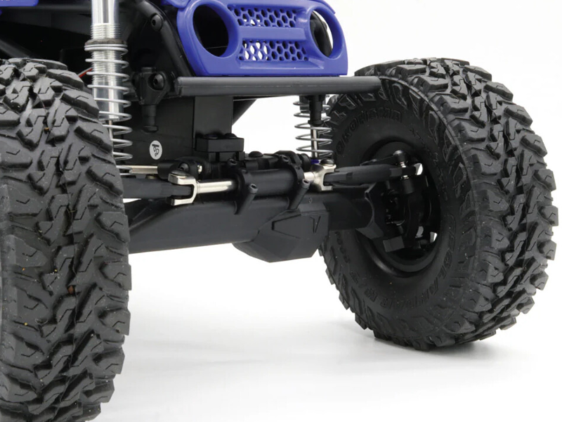 Die neu entwickelten H10 Achsen bieten eine größere Breite als die bekannten F10 Achsen und integrieren eine Scale-Hydrauliklenkung im Hydro-Ram-Stil. Diese innovative Lenkung simuliert einen echten Hydraulikzylinder („Ram“): Das Lenkservo ist geschickt hinter der Vorderachse versteckt und steuert die Räder indirekt an. Beim Einfedern taucht das Servo in das Chassis ein – für maximale Scale-Optik ohne sichtbare Lenkstangen und optimalen Schutz bei harten Geländefahrten. - 4-Link-Aufhängung mit achsmontiertem Lenkservo