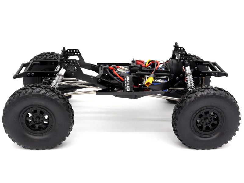 Das Chassis des VRD RTR besteht aus neuen gespritzten Komponenten und bietet durchdachte Einstellmöglichkeiten für Stoßdämpfer und Karosseriemontage. Die minimalistischen, austauschbaren Stoßfänger vorne und hinten erleichtern die Karosserieanpassung. Die flachen Rock-Slider bieten eine ideale Plattform zur Montage von Elektronik oder Akku und schützen gleichzeitig die Karosserie. - Antrieb