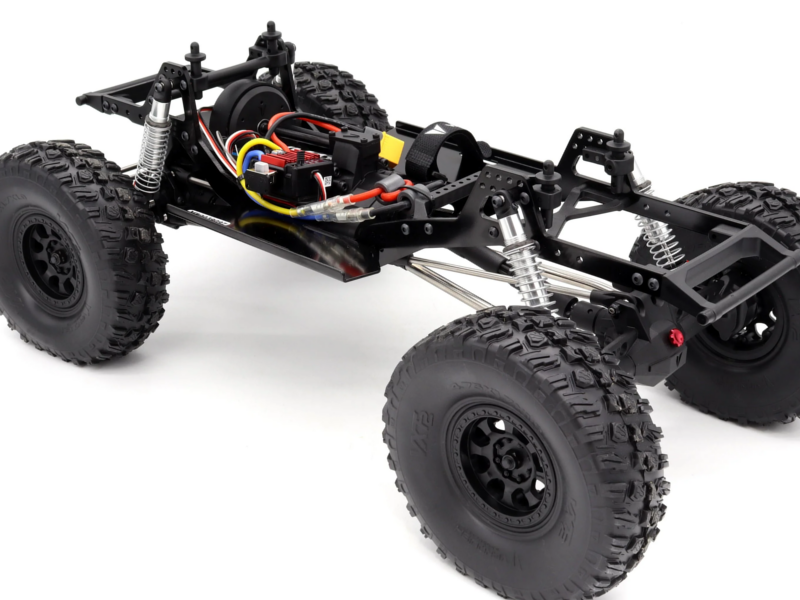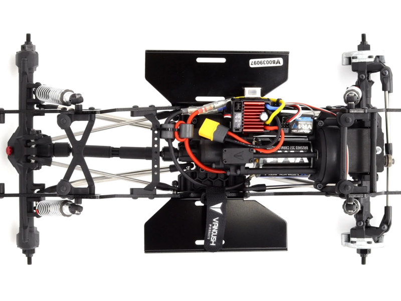 Das Chassis des VRD RTR besteht aus neuen gespritzten Komponenten und bietet durchdachte Einstellmöglichkeiten für Stoßdämpfer und Karosseriemontage. Die minimalistischen, austauschbaren Stoßfänger vorne und hinten erleichtern die Karosserieanpassung. Die flachen Rock-Slider bieten eine ideale Plattform zur Montage von Elektronik oder Akku und schützen gleichzeitig die Karosserie.